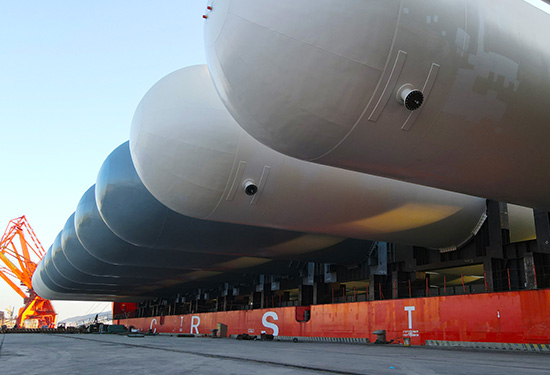 威海石島重工制造“巨無(wú)霸”四件套重裝啟運(yùn)